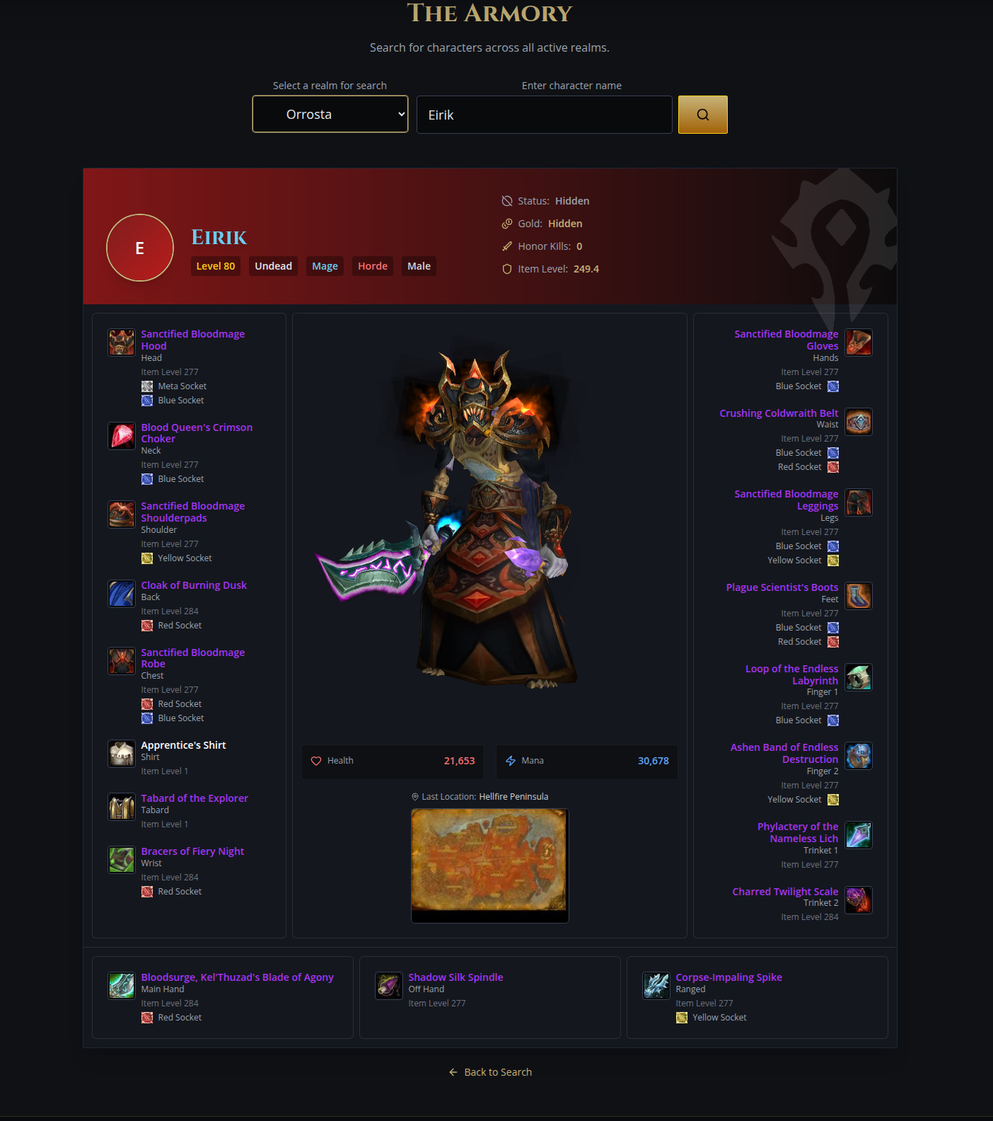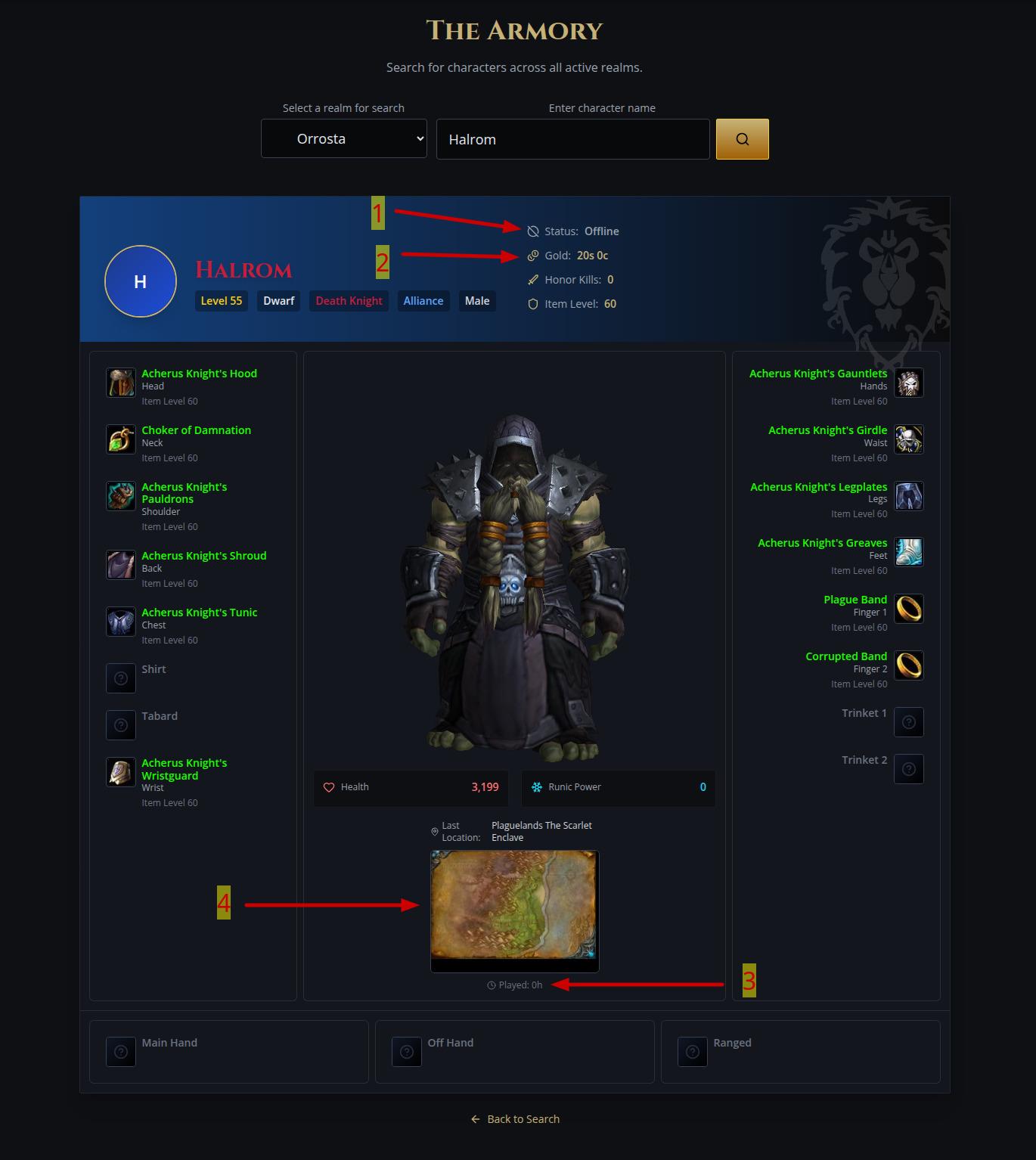 如果找到该角色,将以 3D 形式显示其完整装备,以及所有已装备物品在对应槽位中的展示。