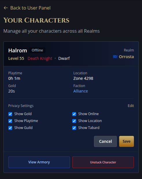 您可以在两个不同的地方调整英雄榜中显示的关于您角色的一些详细信息。