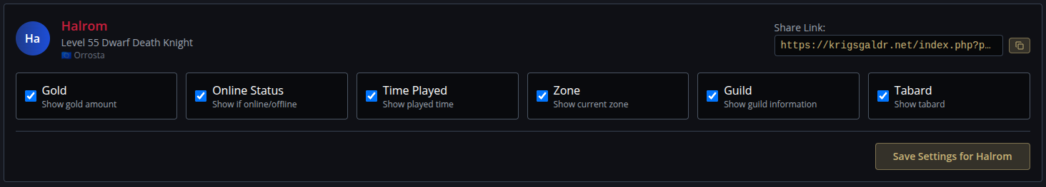 在這裡,您可以選擇在角色的英雄榜檢視中顯示或隱藏哪些內容。