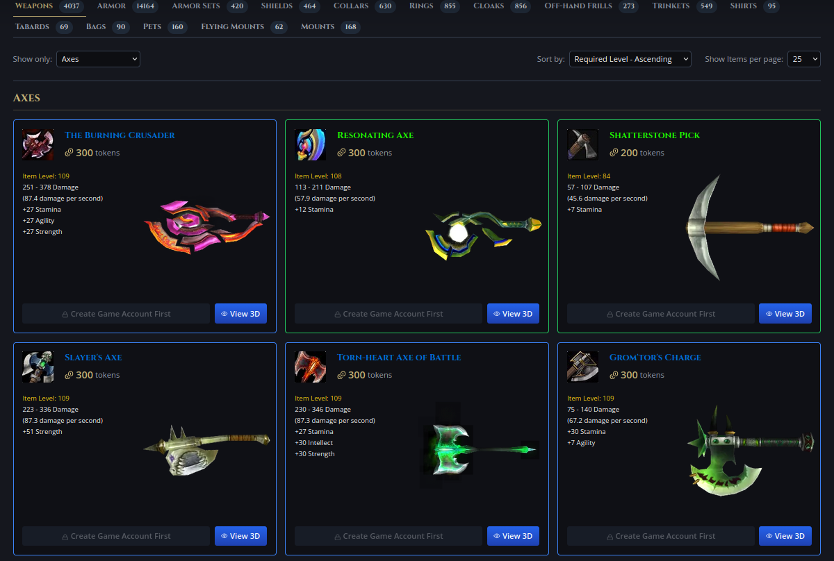 如果在所选商城中找到了您的帳戶,您的第一個角色將被自動選中,以便您查看物品在您角色身上的樣子。如果您在該伺服器上有更多角色,可以透過下拉選單更改角色。