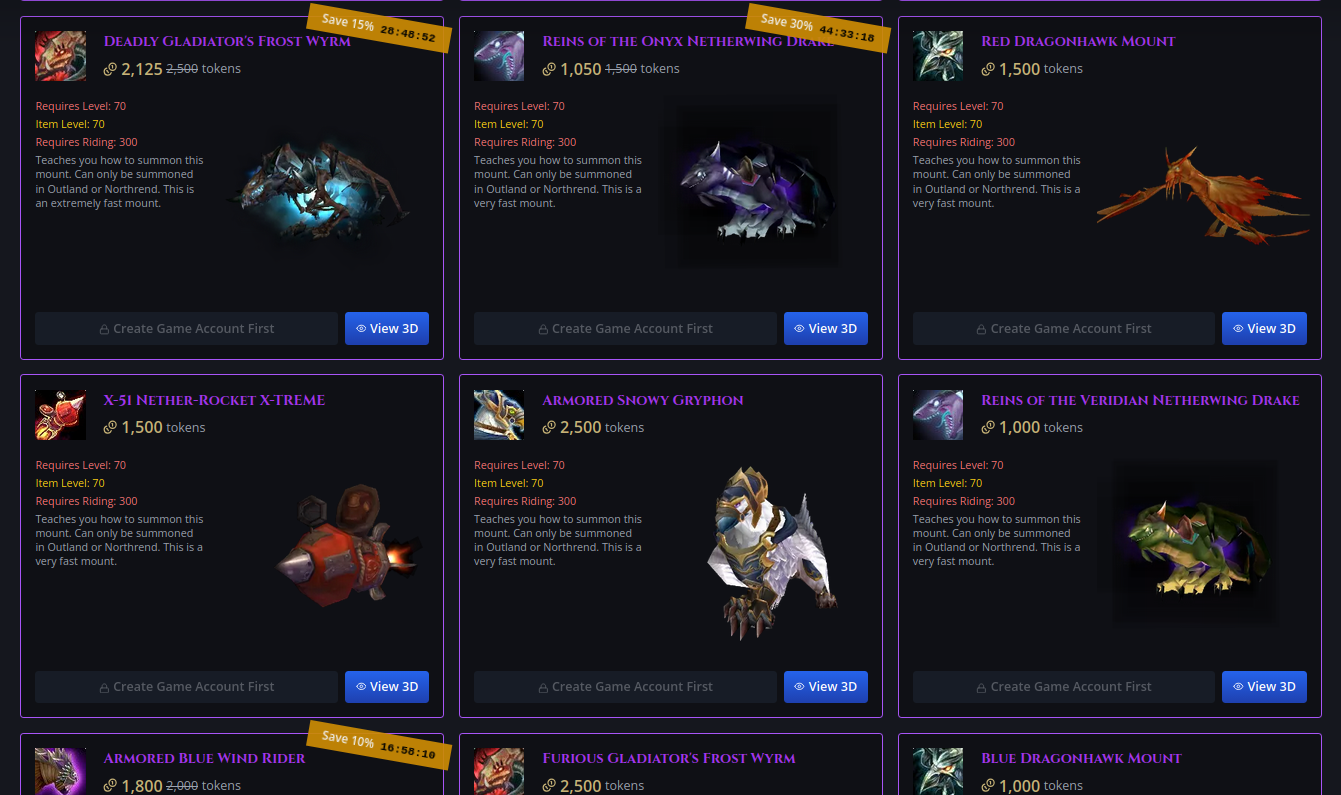 如果您在所选商城上沒有帳戶或角色,將使用一個預設角色,以便您查看物品「在角色身上的樣子」。所有「立即購買」按鈕自然會被停用。